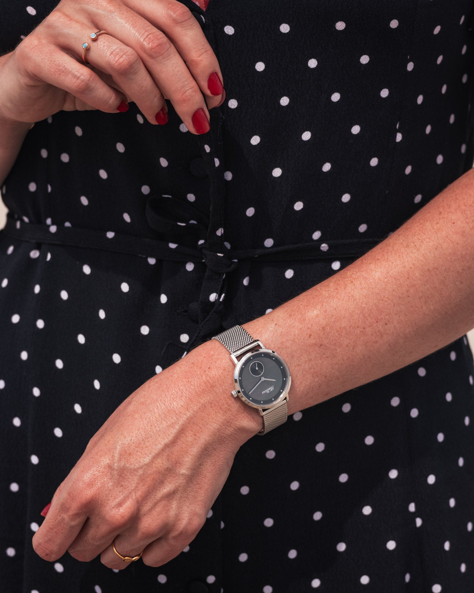 New Sky posiada idealne proporcje. Średnica zegarka to 34mm. Dzięki temu będzie świetnie leżał na każdym kobiecym nadgarstku, ozdabiając go swą elegancją. A gdy będzie taka potrzeba perfekcyjnie wsunie się pod mankiet koszuli, żakietu lub marynarki. To w sytuacjach, gdy jego dyskretna obecność będzie niezaprzeczalnym atutem.